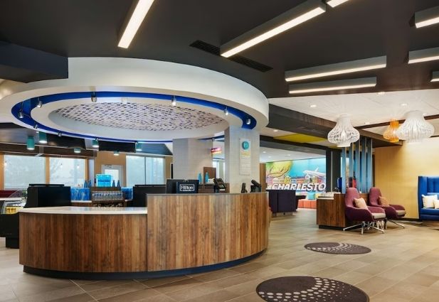 A modern, budget-friendly hotel located just minutes from Charleston International Airport. Tru offers free hot breakfast, Wi-Fi, and parking, plus a vibrant lobby with workspaces, games, and snacks. Rooms are bright and efficient with large TVs and comfortable beds. Guests also enjoy an indoor pool and fitness center, a convenient, low-stress stop for road-trip travelers exploring the Charleston area.